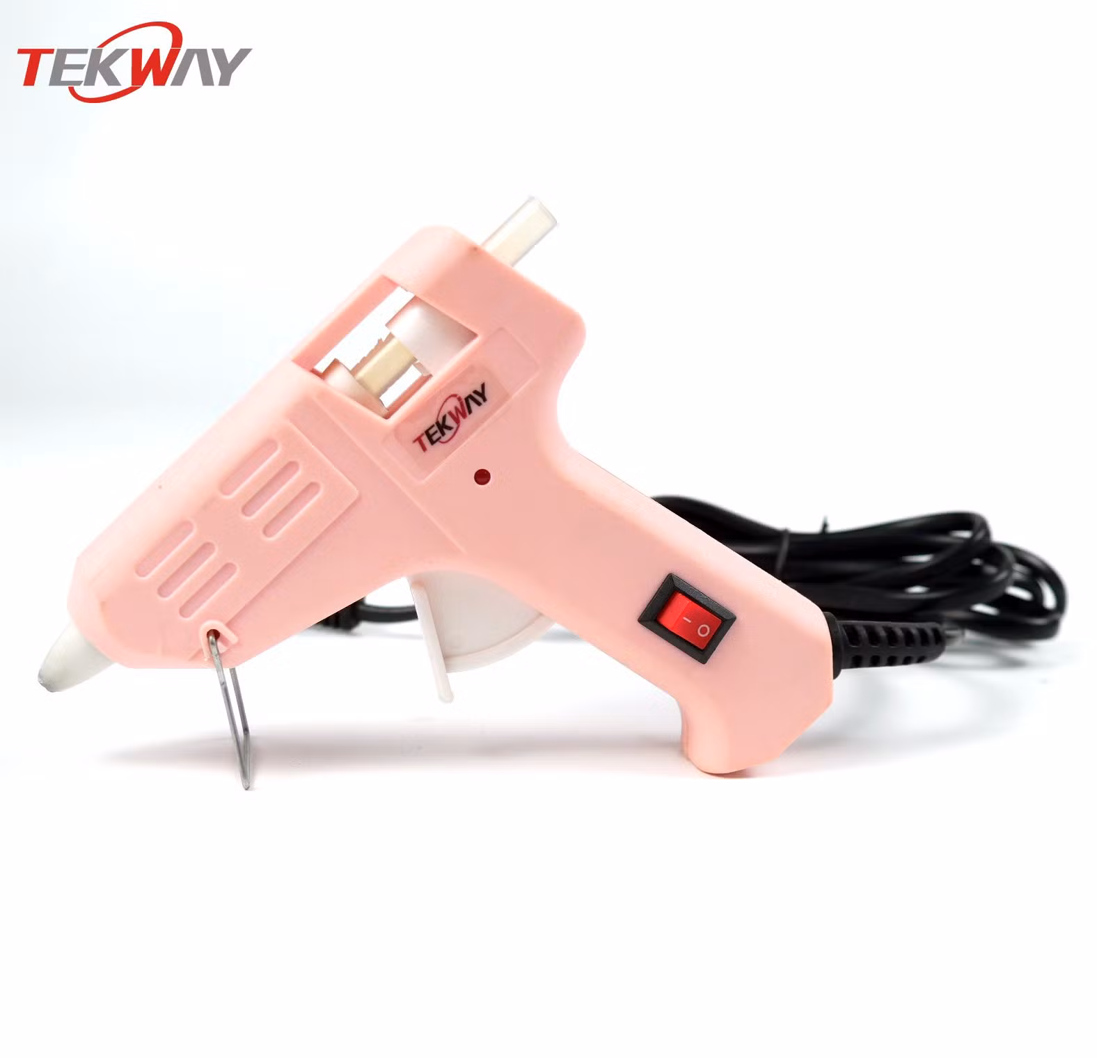 Клей пушки работы путем нагревания тюбик клея с помощью нагревательного элемента внутри ручной тела. Твердотельный жесткий клей Memory stick™ подается в инструмент, и после того как расплавленный клей течет из пистолета металлического наконечника сопла и на склеиваемые поверхности.